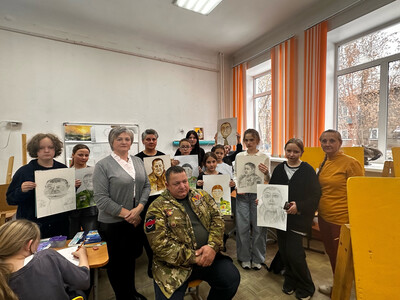 Сейчас по всей стране проходит всероссийская акция "Портрет героя-2025". 15 октября ученики художественного отделения Нижнеудинской детской школы искусств «Спутник» вместе с педагогами Авсиевич Н.А и Чайко Е.А приняли участие в этой акции. Акция- это проведение урока рисования, где участники акции изображают героя, участника СВО, пришедшего на урок. Цель акции- провести с молодёжью патриотическо-воспитательную работу, прославить имена героев. В процессе урока герой, приглашённый на встречу, Сёмак Ярослав Васильевич, общался с детьми, а дети его рисовали. Ярослав Васильевич рассказывал о том, как он защищал родину в ходе специальной военной операции, как живут люди в Луганске и Донецке. Ребята задавали ему вопросы и в завершении урока Ярослав Васильевич выбрал понравившийся ему портрет, но все остальные ребята с радостью подарили ему свои работы, чему Ярослав Васильевич был очень рад!