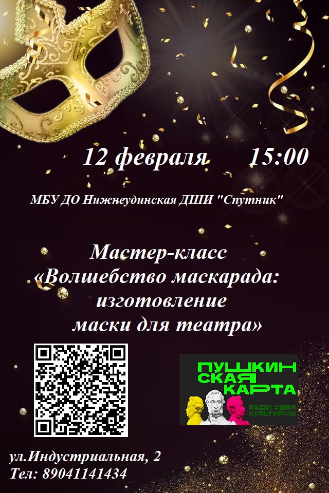 В рамках реализации федерального проекта «Пушкинская карта» Нижнеудинская детская школа искусств «Спутник» приглашает на Мастер- класс «Волшебство маскарада: изготовление маски для театра»